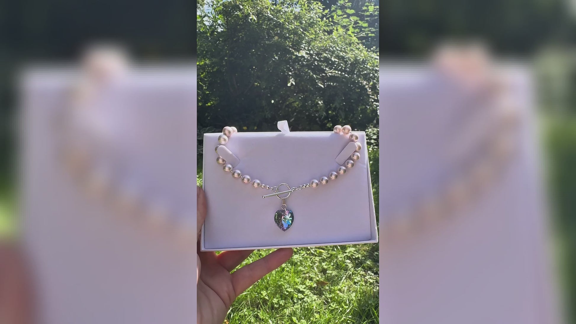 Romantic necklace with blush pearls and crystal heart on solid 925 silver chain. Gift-ready, free returns.