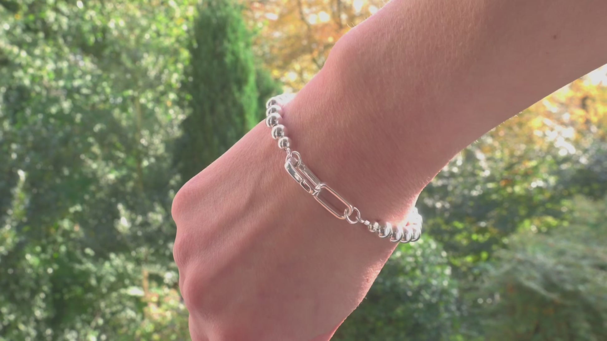 Crafted from solid sterling silver, this bead bracelet is the kind of everyday luxury that speaks softly but leaves a mark. With high-polish round beads and a rectangular clasp, it blends classic form with contemporary cool.