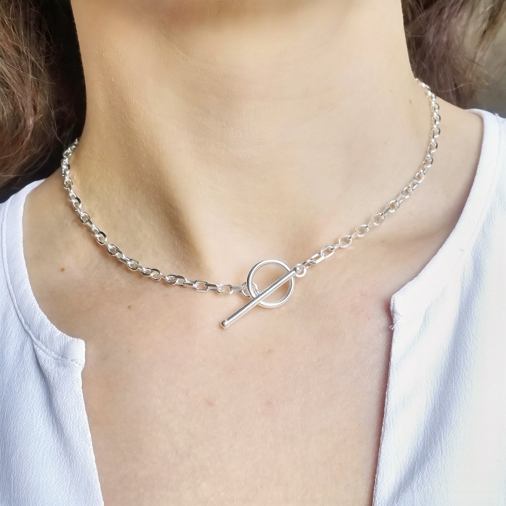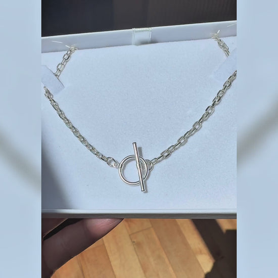 Sterling Silver Toggle Clasp Necklace – Solid 925 Chain, Minimalist Design