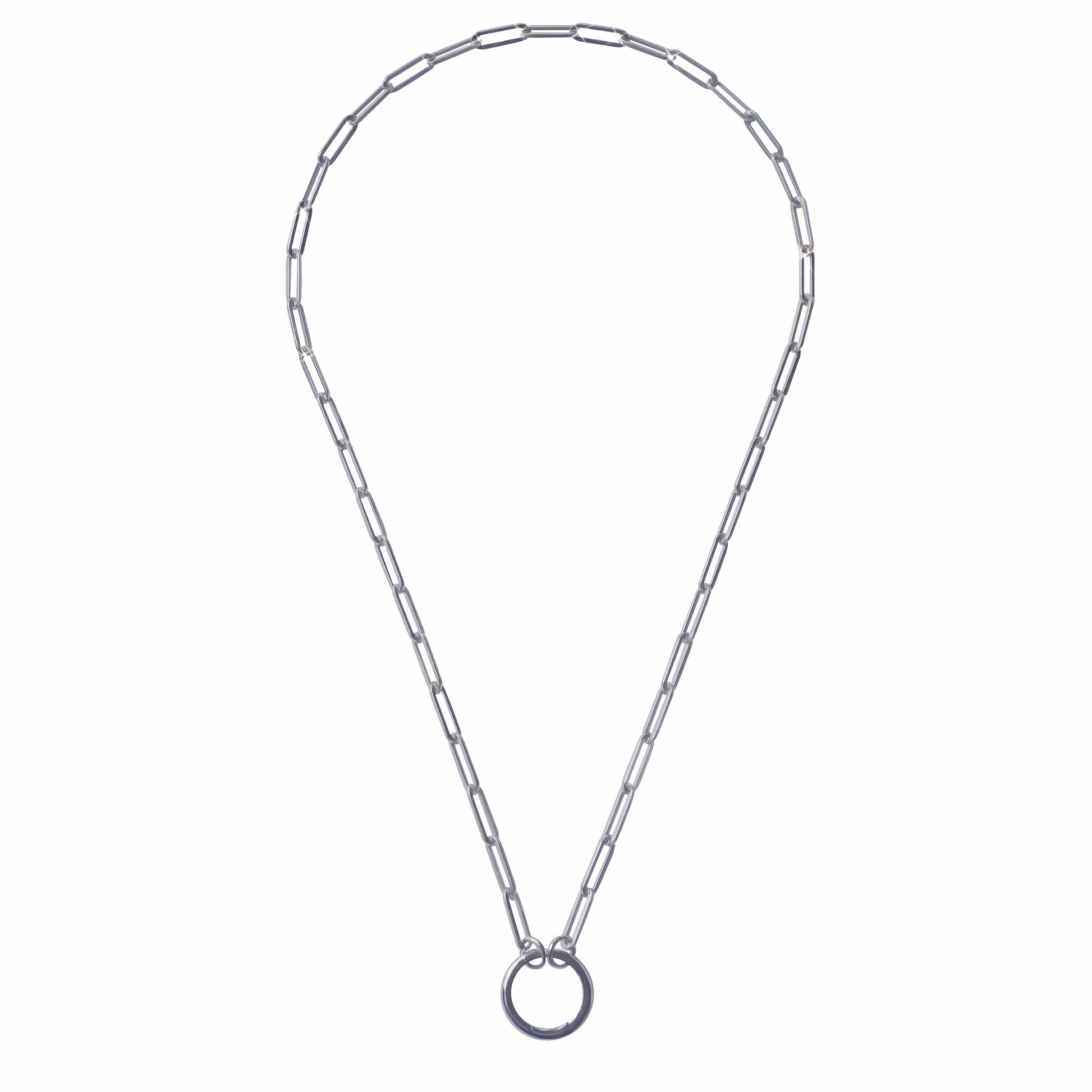 A timeless staple with a personal twist. This solid sterling silver charm necklace features a modern wire trace chain and a sleek circle connector, designed to hold charms that tell your story.