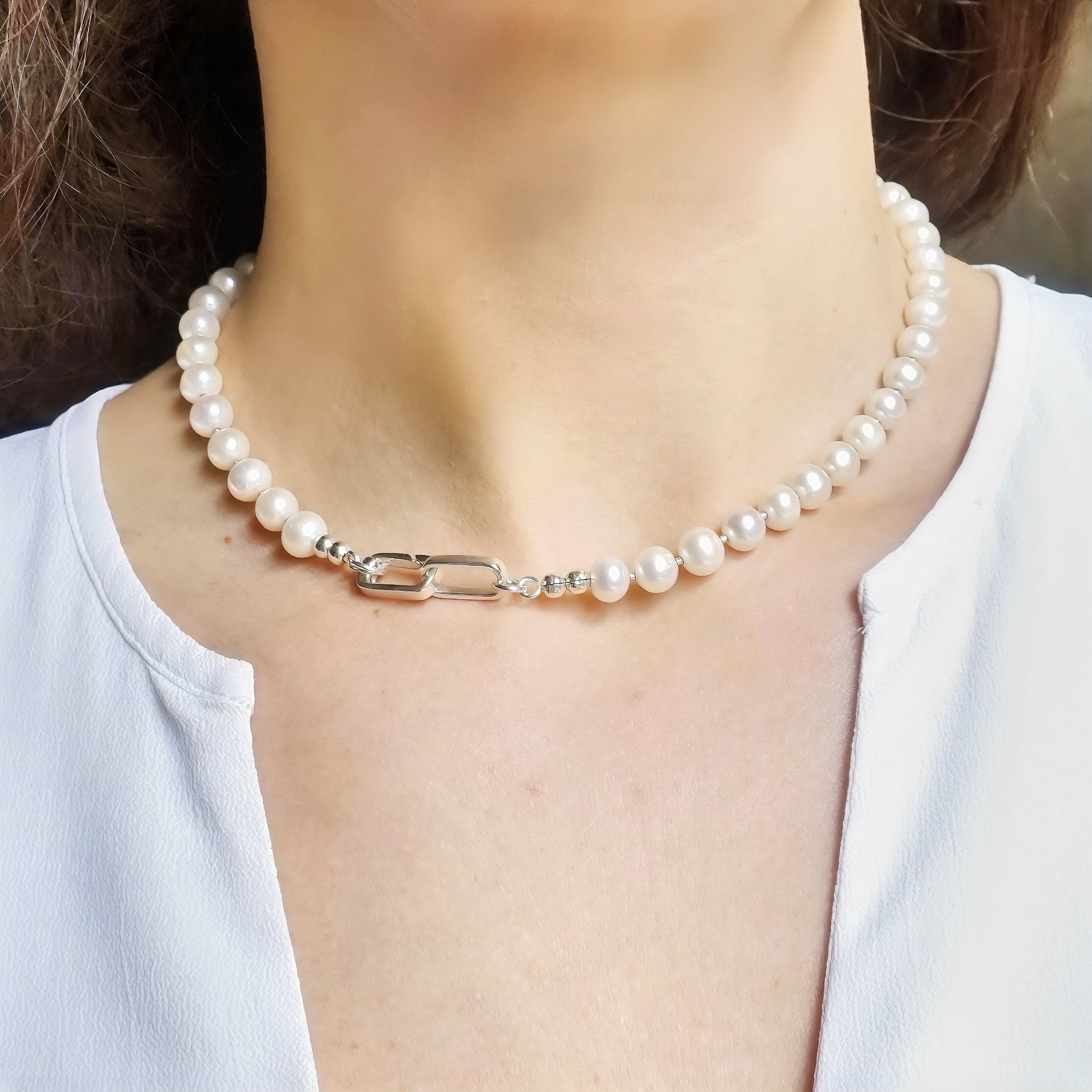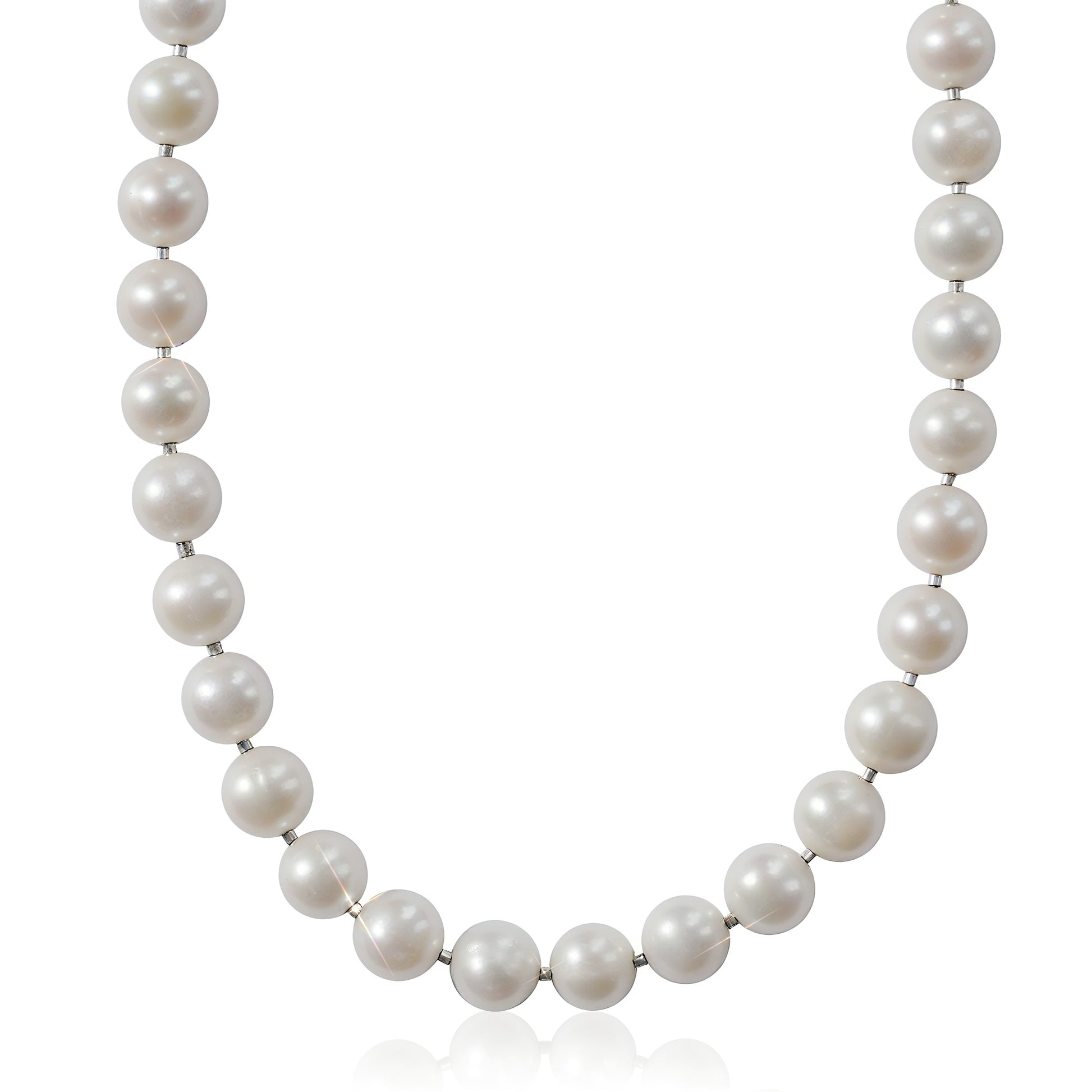 Understated elegance with a modern twist. This necklace features a full string of lustrous freshwater pearls, finished with a bold sterling silver clasp for a contemporary edge.